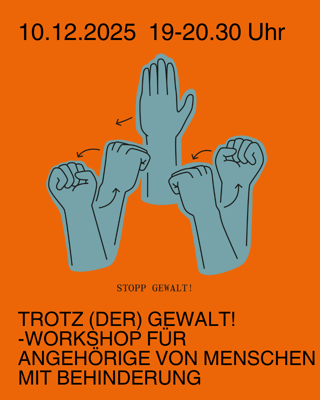 Der Workshop findet im Rahmen der Aktionstage gegen Gewalt an Frauen (https://www.16tage.ch/) statt, die dieses Jahr das Thema Behinderung und Gewalt fokussieren.